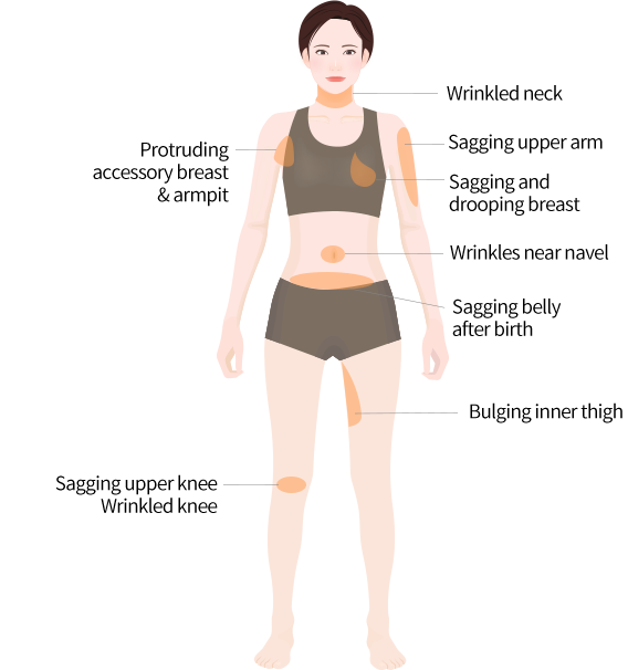 Give tightening effect by regenerating the collagen of body skin that lost elasticity after weight-loss, birth, aging and etc.