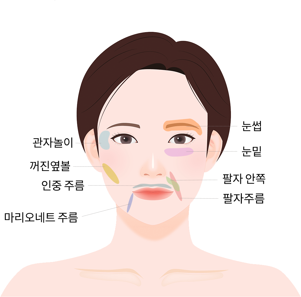 얼굴의 처짐, 꺼짐, 도드라짐을 동시에 해결합니다.