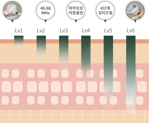 유니폴라 고주파 에너지를 6단계 깊이 조절 기술을 통해