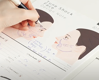 에너지 강도와 깊이, 샷 배분, 팁의 방향 등 시술 계획을 기록하여 완성된