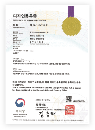 마스터핏 디자인노트는 특허청 디자인 등록을 완료한