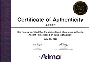 해당 인증서는 오직, 고정아클리닉에서만 받아보실 수 있습니다.