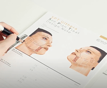 에너지 강도와 깊이, 샷 배분, 팁의 방향 등 시술 계획을 기록하여 완성된